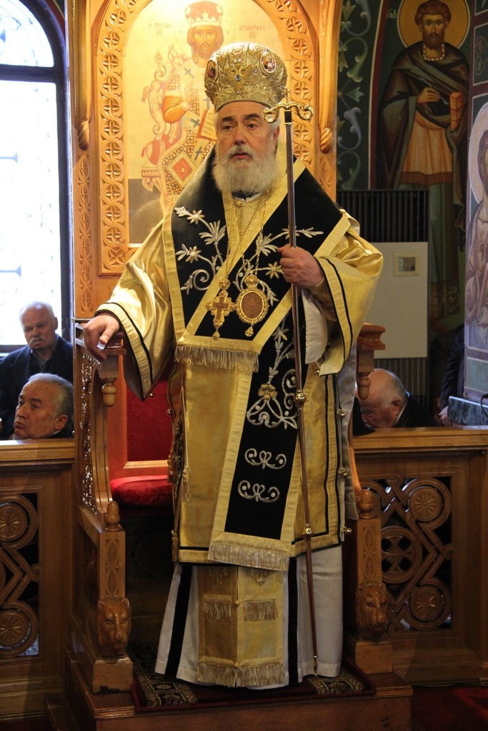 Συνοδευόμενος από τον Πρωτοσύγκελλό Του Αρχιμανδρίτη