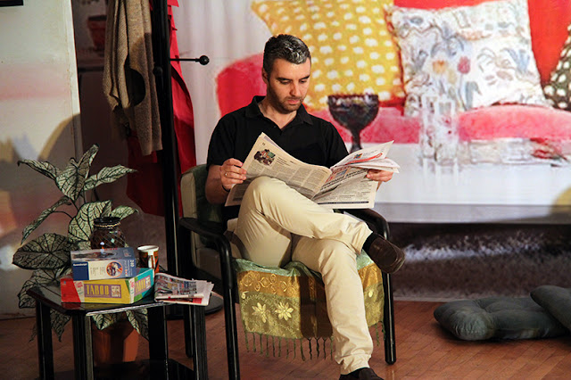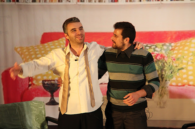συγκινημένος, αλλά και χαρούμενος από το θεατρικό έργο και την όλη