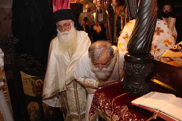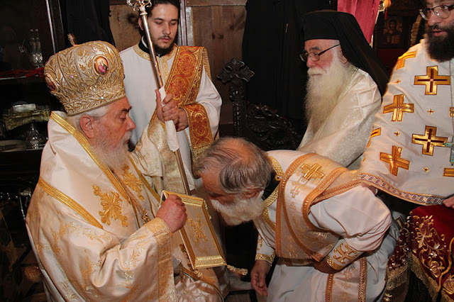 παραδίδοντας του, το Ιερατικό και ένα Ιερό Αντιμήνσιο για να τελεί με αυτά την