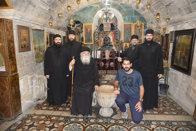 Μεταξύ των προσκυνημάτων επισκεφθήκαμε και την Ιερά Μονή Αγίου Γεωργίου Χοζεβά, όπου ευρίσκεται και το σπήλαιο που είχε κρυφτεί ο Προφήτης Ηλίας και τον τάιζε το κοράκι.