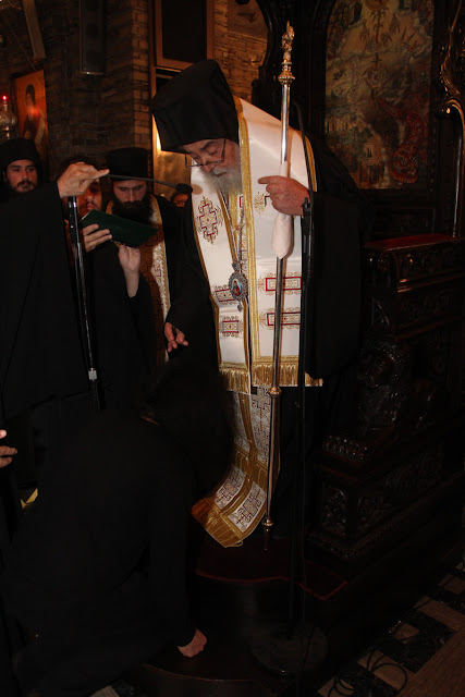 του Εσπερινού στο Καθολικό του Ιερού Ησυχαστηρίου από τον Σεβ. Μητροπολίτη και