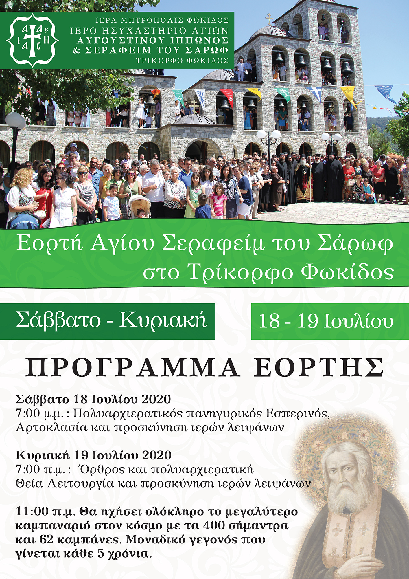 Ιουλίου 2020 εορτάζουμε πανηγυρικά στο Τρίκορφο Φωκίδος, στην Ιερά Μονή Αγίων