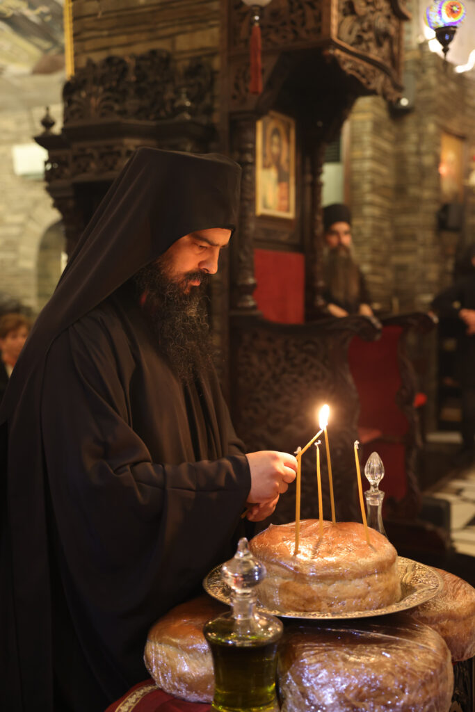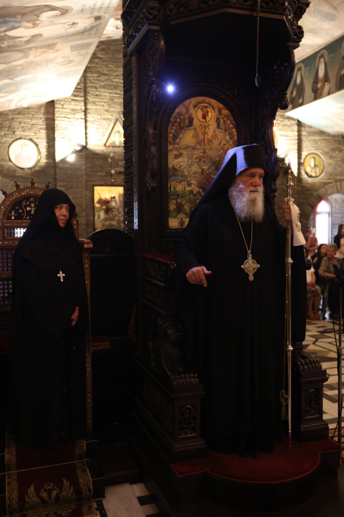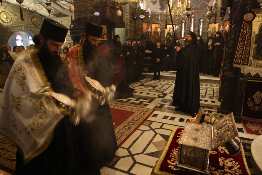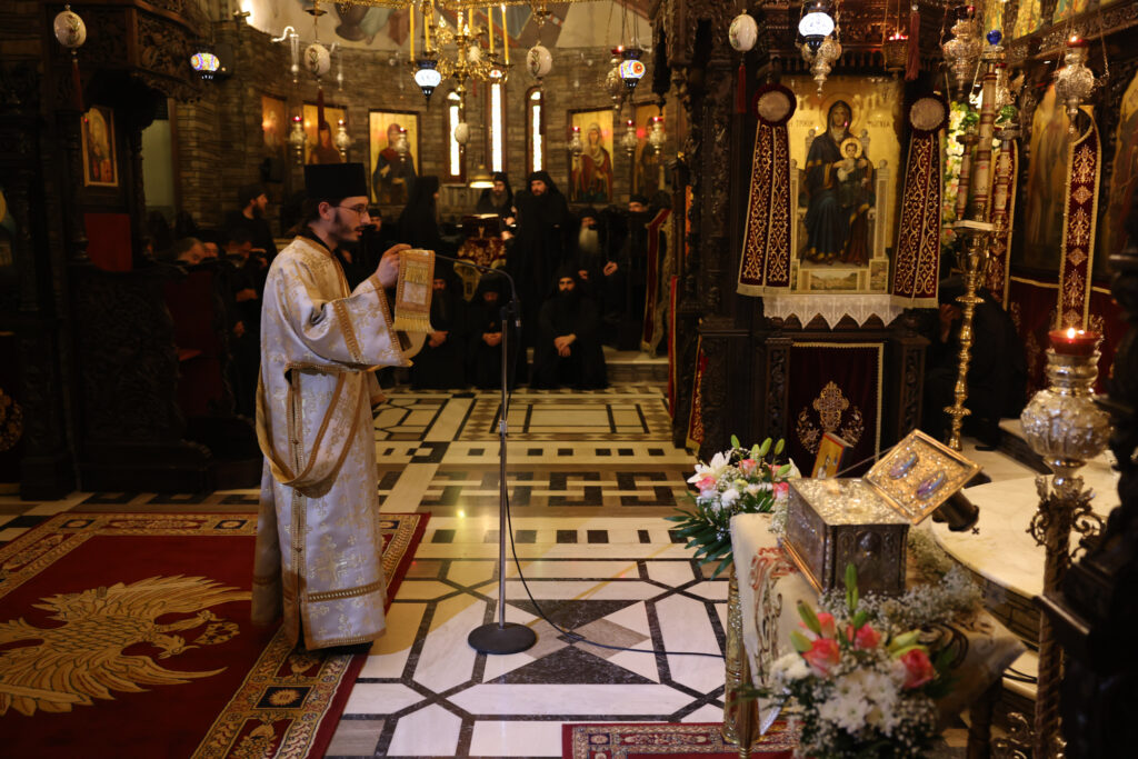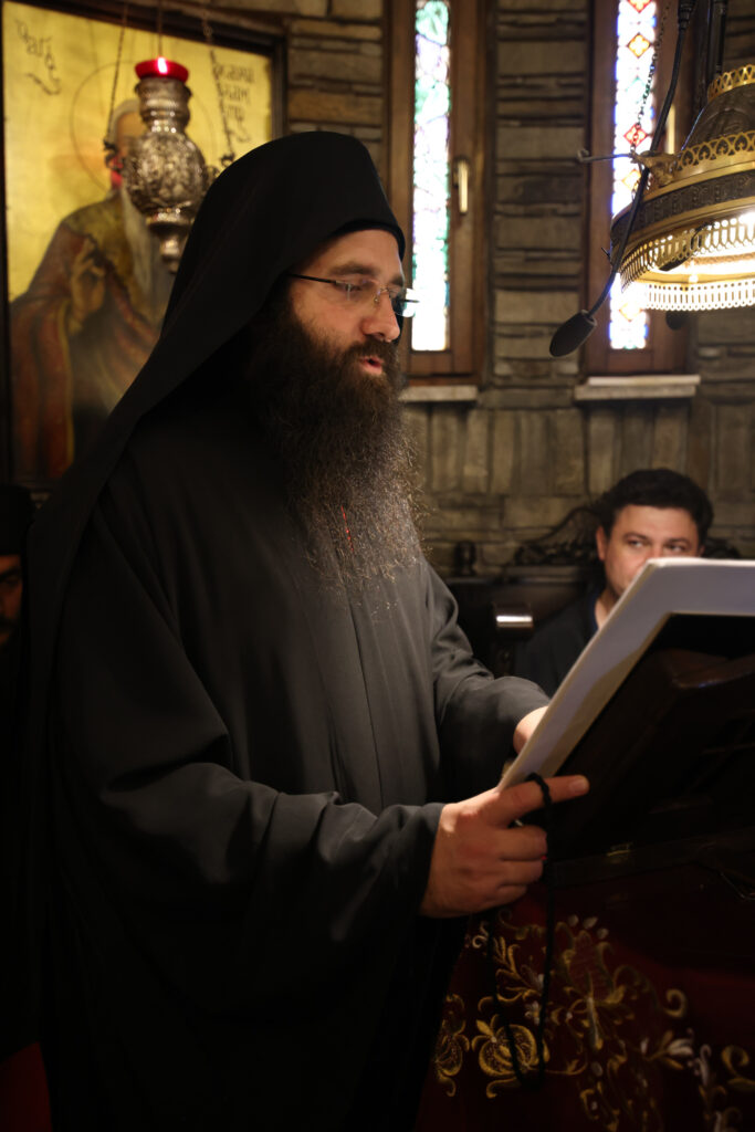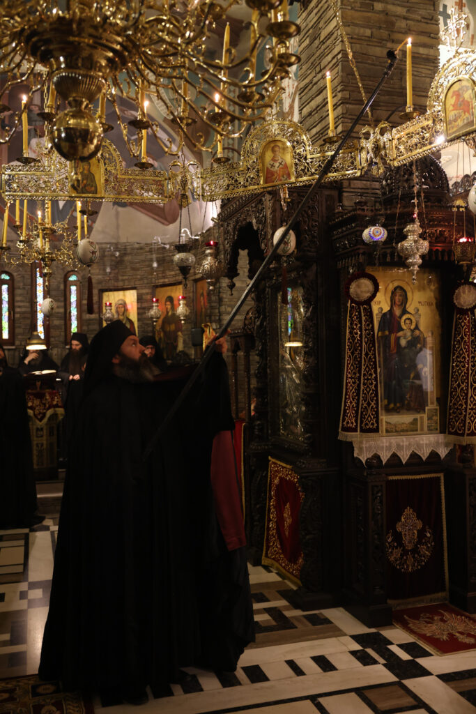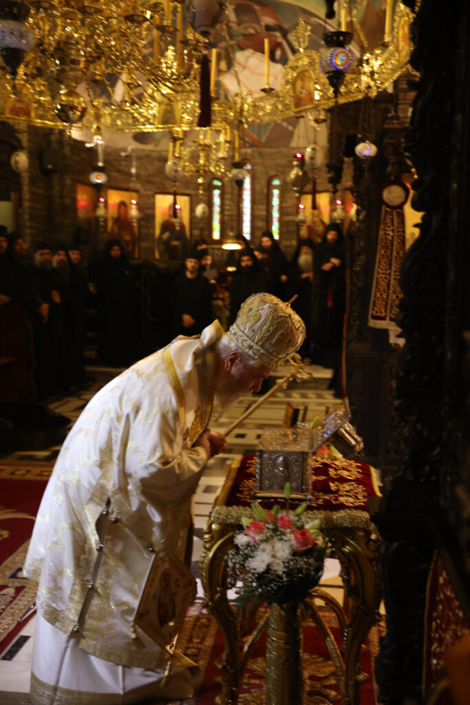 Στην πανηγυρική ακολουθία του Εσπερινού χοροστάτησε ο Καθηγούμενος του Ιερού Ησυχαστηρίου και Πρωτοσύγκελλος της Ι.Μ. Φωκίδος Γέροντας Νεκτάριος Μουλατσιώτης.