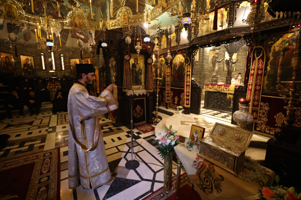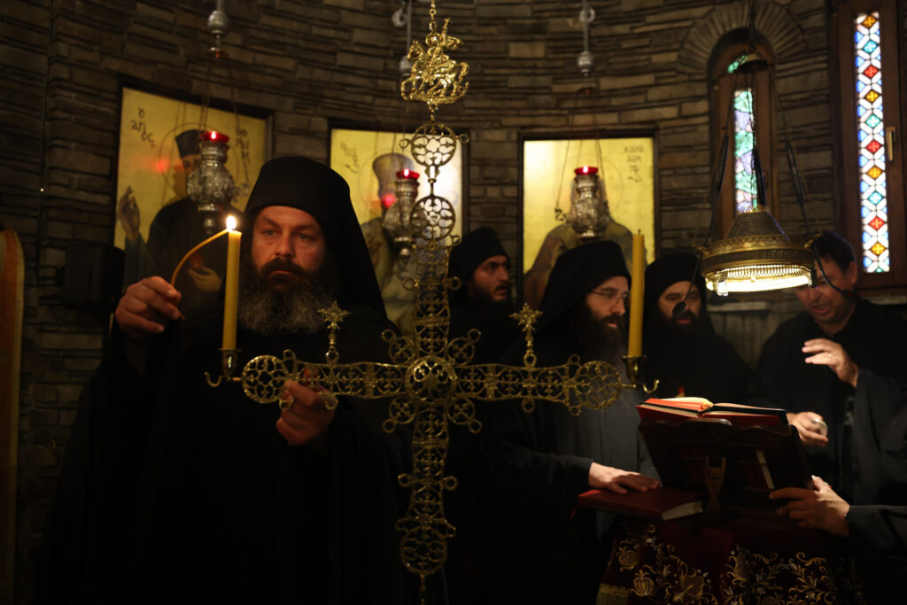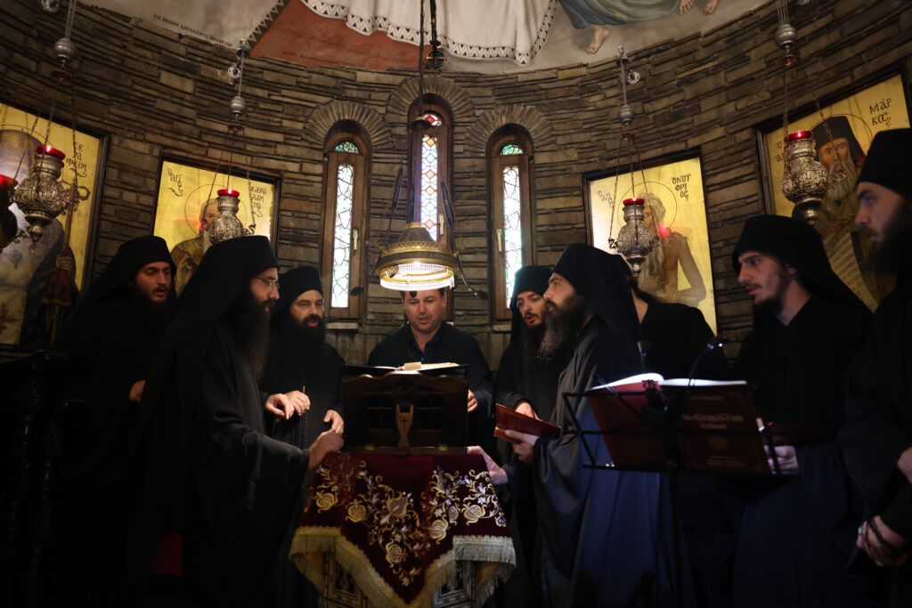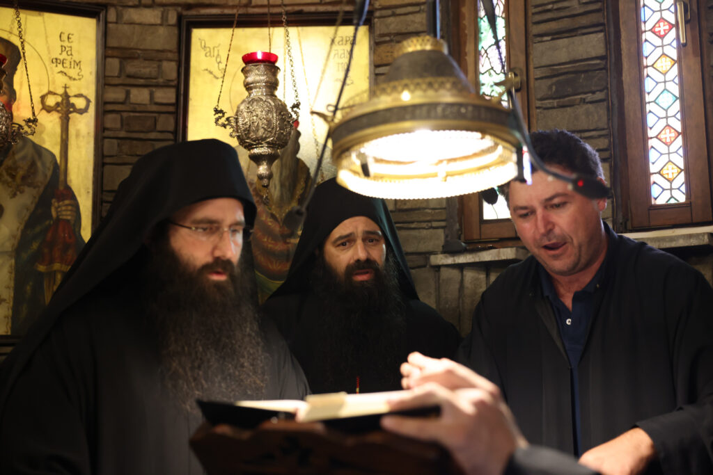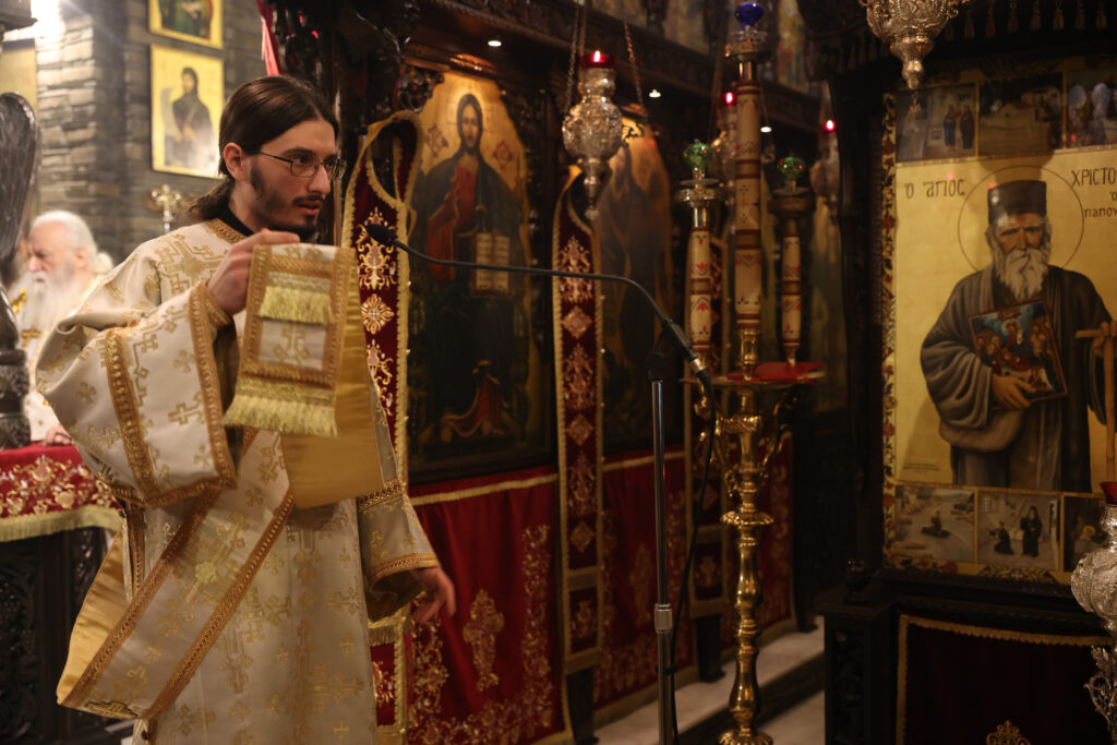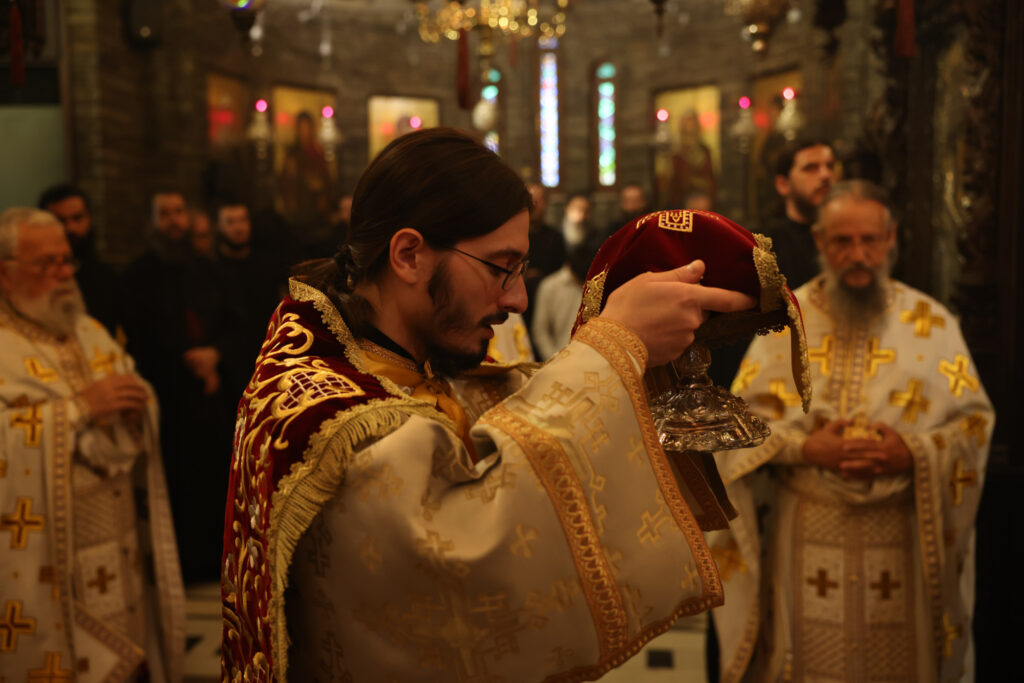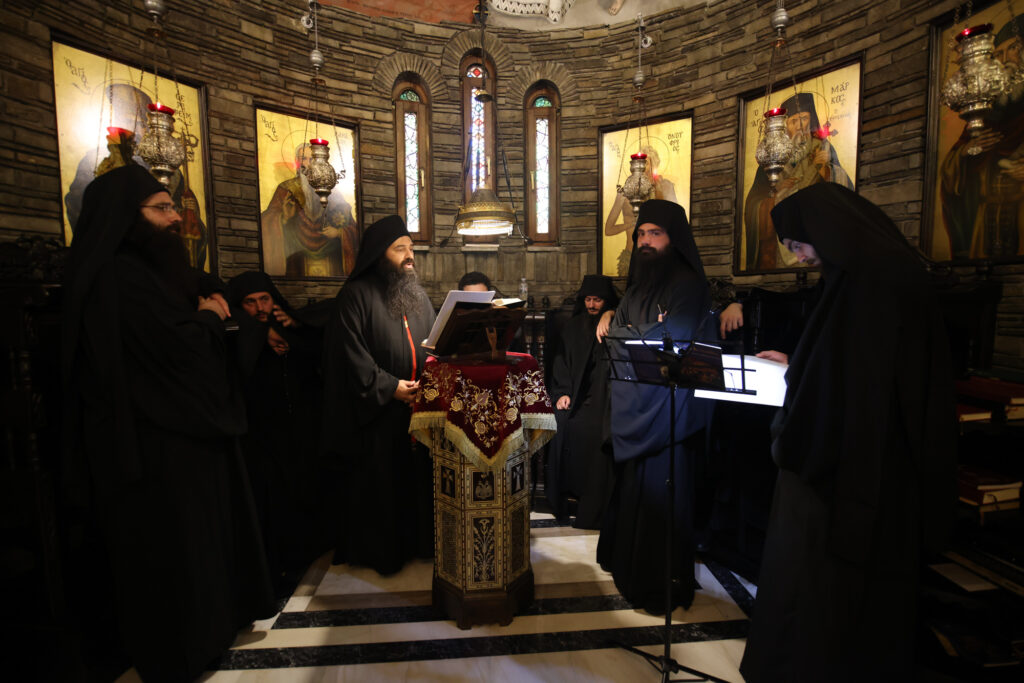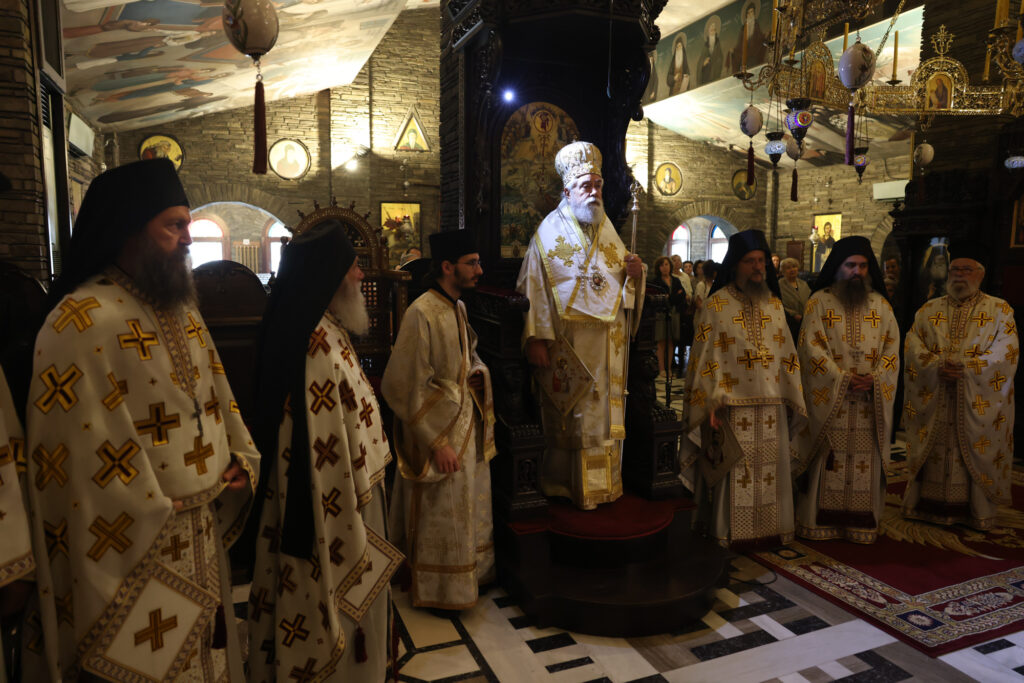 Στην πανηγυρική ακολουθία του Εσπερινού χοροστάτησε ο Καθηγούμενος του Ιερού Ησυχαστηρίου και Πρωτοσύγκελλος της Ι.Μ. Φωκίδος Γέροντας Νεκτάριος Μουλατσιώτης.