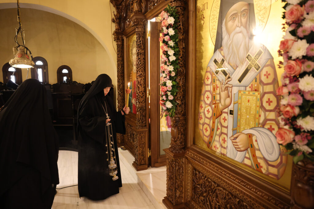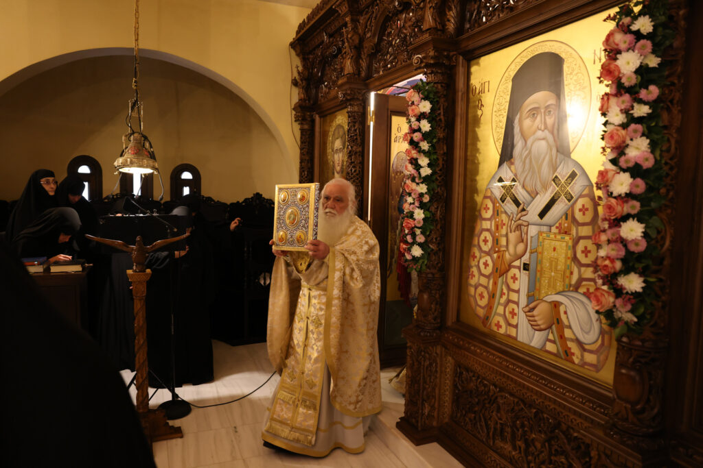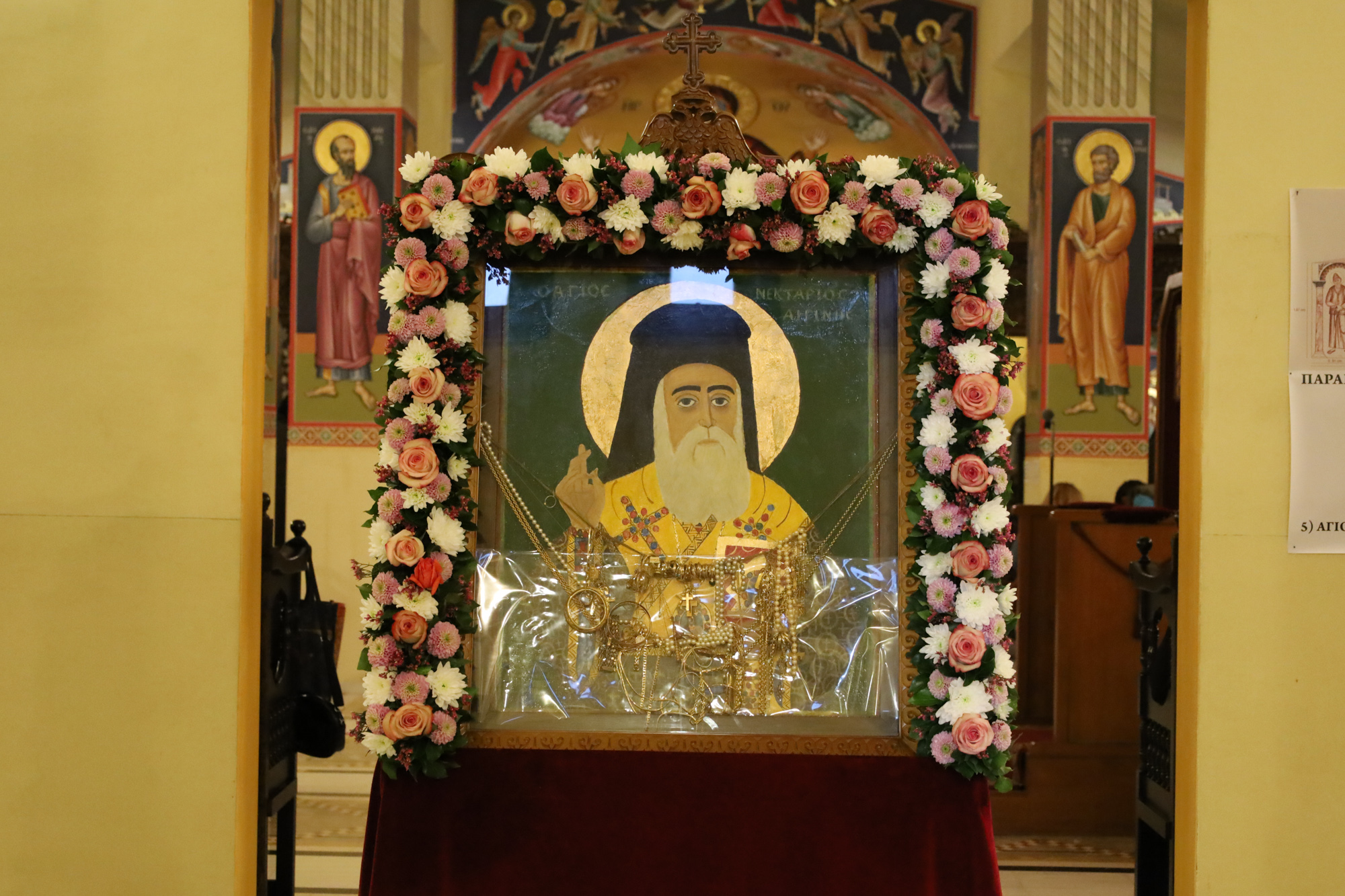 Οι πιστοί κατά την διάρκεια της εορτής του Αγίου Νεκταρίου είχαν την ευκαιρία να προσκυνήσουν ιερά λείψανα και αντικείμενα του Αγίου πού φυλάσσονται στην γυναικεία Ιερά Μονή.