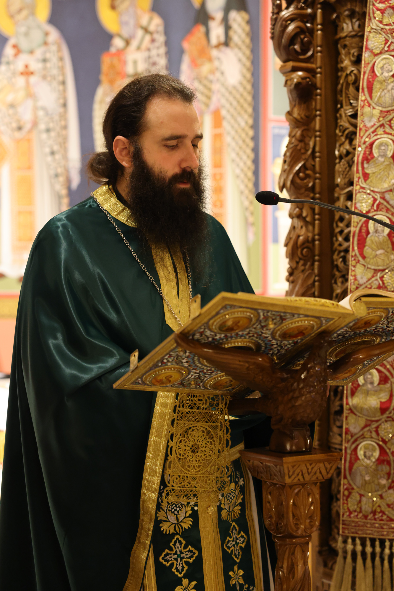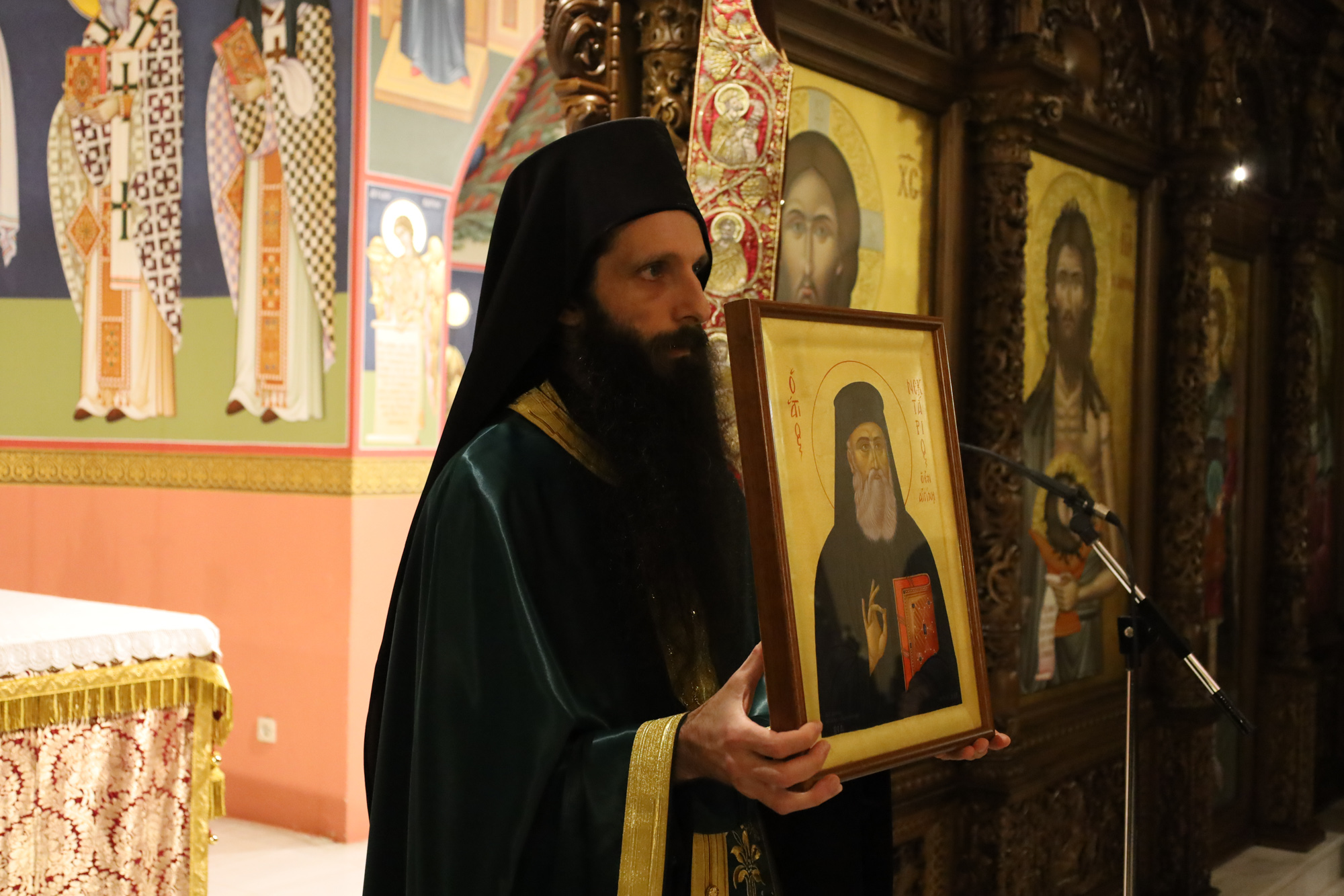 Το Σάββατο 8 Νοεμβρίου το απόγευμα στον πανηγυρικό Εσπερινό χοροστάτησε και κήρυξε τον θείο λόγο ο Κτίτωρ και Πνευματικός της γυναικείας Ιεράς Μονής Αγίου Νεκταρίου και Αγίου Φανουρίου, Πρωτοσύγκελλος της Ι.Μ. Φωκίδος Αρχιμ. Νεκτάριος Μουλατσιώτης, ο οποίος φέρει και το όνομα του Αγίου Νεκταρίου και άγει τα ονομαστήριά του, πλαισιούμενος από κληρικούς και Ιερομονάχους της Ι.Μ. Φωκίδος.