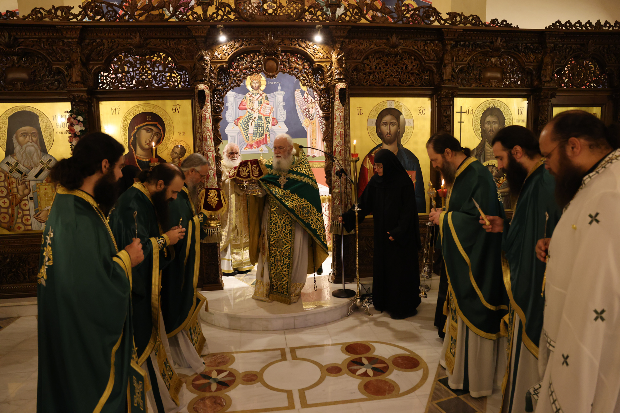 Την κυριώνυμο ημέρα Κυριακή 9 Νοεμβρίου τελέσθηκε η πανηγυρική θεία λειτουργία, στην οποία προεξήρχε ο εορτάζων Γέροντας Νεκτάριος πλαισιούμενος από πλειάδα ιερέων.