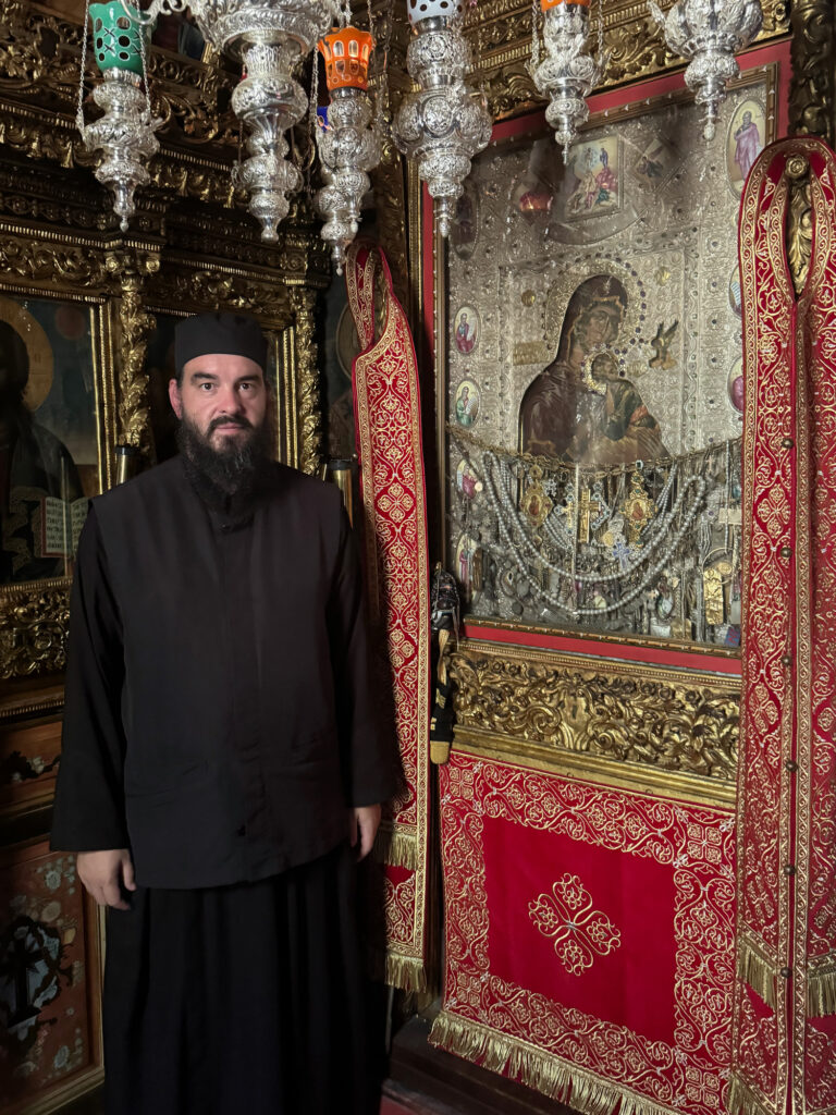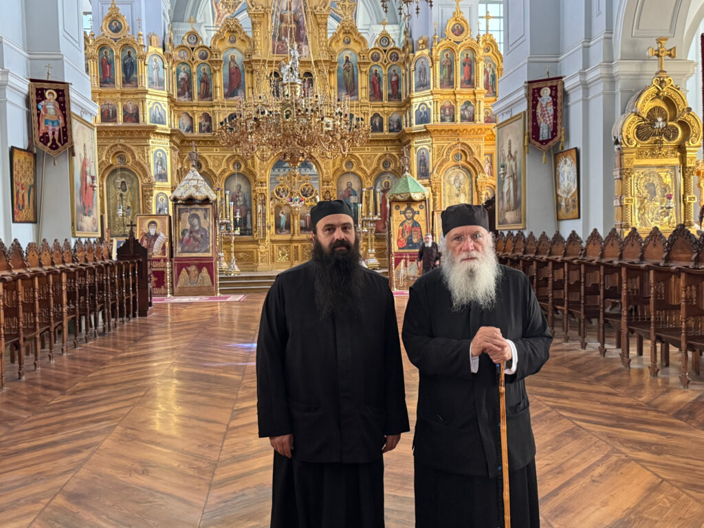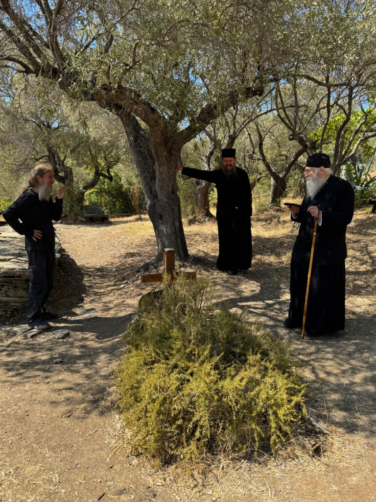 Ο Γέροντας Νεκτάριος συνοδευόμενος από πνευματικά του παιδιά, τους Ιερομονάχους Χριστόδουλο και Ιωακείμ, επισκέφθηκαν για να προσκυνήσουν τον τάφο του Οσίου Τύχωνα και να πάρουν χάρη από τη χάρη του Αγίου. Επίσης επισκέφθηκαν και άλλες Ιερές Μονές του Αγίου Όρους.